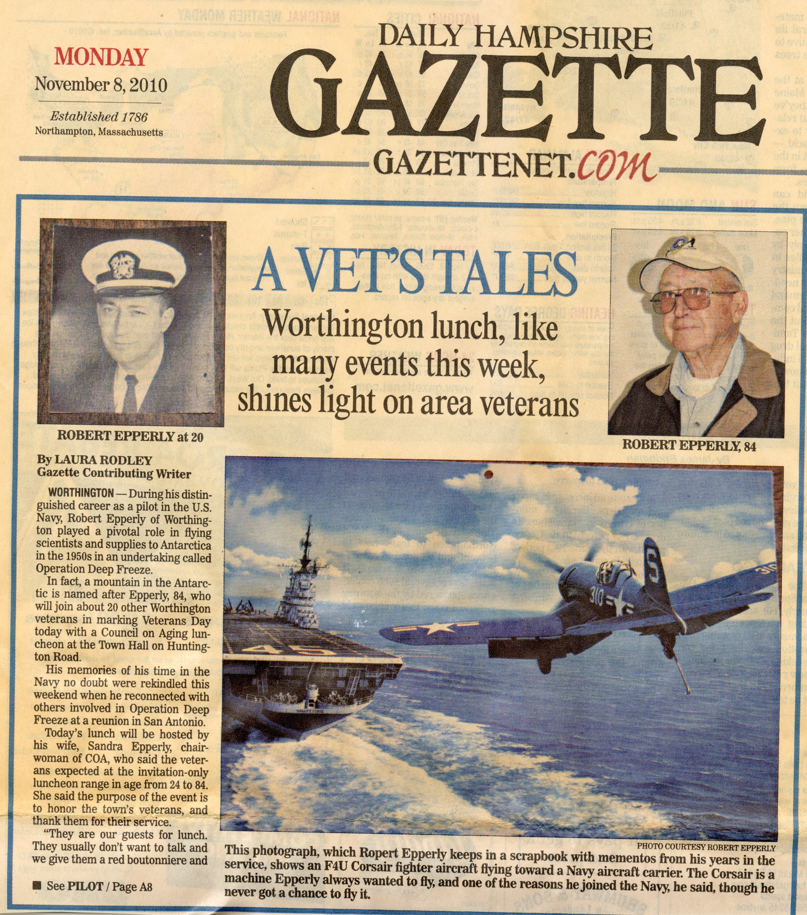 Titled: 'Notes and Recollections Naval Service, 1943-1964' includes notes for Hampshire Gazette article (2014a-015) and other memories and recollections of Bob Epperly's career as a U.S. Navy pilot.