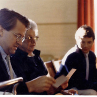 Photographs of townspeople taken by Lyn Horton in 1986. Accompanying the photos, which are mounted on cardboard (11" x 14"), is her statement: "Herein lies a document of my interaction with thew townspeople of Worthington. Invisibly rests the sentiment which accompanies my perceptions. Those persons photographed are nameless; their characters rise inimitably from their images frozen in time for as long as they can last. all under 2025-068. a: Helen Magargal; b: Lunchtime at Conwell School c: Peg DeMott; d: Ben DeMott e: Julia Sharron, Stephen Kulik, Tony Lake (Finance Committee Chairperson); f: Rob Bartlett; g: Howard Mollison; h: Bert Nugent and Donald Newton; i: Andy Burr and Harriet Burr; j. Nina Pruner; k: Peter McLean; l.: Dan and Becky Okrent; m: Charley Sawyer; n. Steve Strom; o: Tom Quinn; p. Town Meeting: Cath Whitcomb, Joyce Mollison; and Susan Kulik q: Children at Denworth Farm; r: Hank Livingston and Michael Donovan; s: Town Metting: Topic School Budget, John Morris, Donald Bridgeman; t: Town Meeting, Jenny Fairman, Esther Kerley; u: Kate WhitcomThe Grangers, Crystal Donovan, John Reagan; x: Lester Champion; y: Harbvey and Tracy and their truck on Harvey Road; z: The Zemmers and Janet Dimock; aa: David Saeyer and Bert Nugent; bb: Field Day at Conwell School, getting organized Field Say at Conwell School, relay event; ff: Town Meeting, Darlene Millman hh: