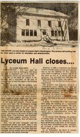 Titled "Lyceum Hall closes. . ." briefly describes history of the building from its construction in early 1860, its many uses over the decades, and the decision to close it.
