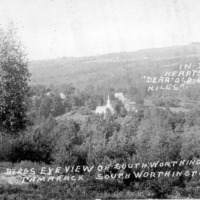 Two birds-eye views of South Worthingon,one loking east from Tamarack on Thrasher Hill Rd., one looking west over the Methodist Church and Conwell's Academy