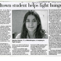 Short feature article in the Hampshire Gazette, May 2013, describing the work of Marina Caputo, age 11, at the Food Bank of Western Massachusetts. Also mentioned in the article are Tanya LeRose and Benjamin Webster. Includes photograph of Marina Caputo.