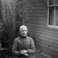 Unidentified Woman Sitting on a Porch. Many of these dryplate glass negative photographs are in The South Worthington Parish Book by Reverend George Reed Moody. Please see this book for further information. They were originally entered into the database with little identification. The photographs were taken between 1882 and 1907 by the Howes Brothers of Ashfield. The origin and purpose of the number often written on the binding tape of these dryplates are presently unknown. The slides were cleaned and catalogued by Marion Sweeney between 1982 and 1986.