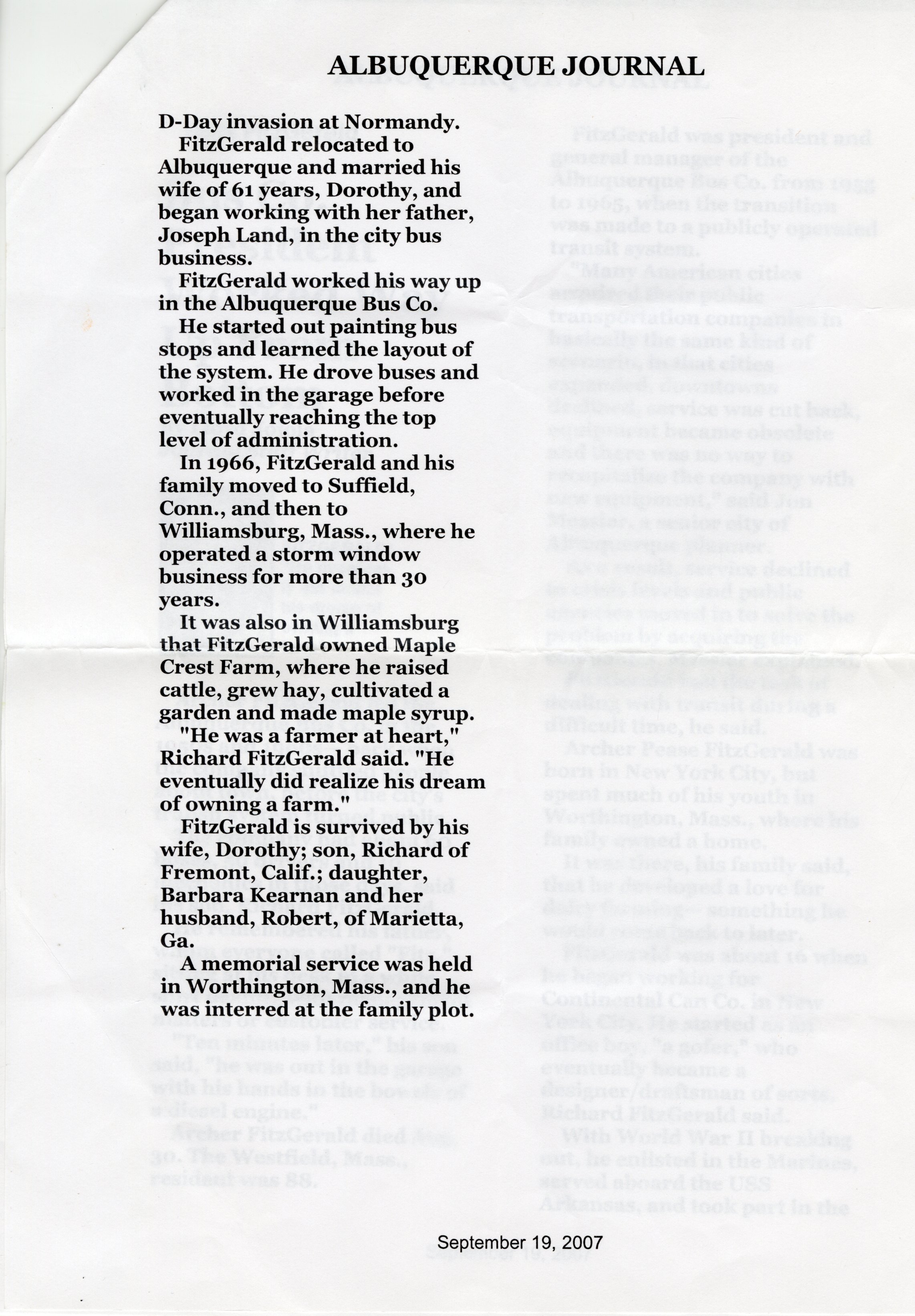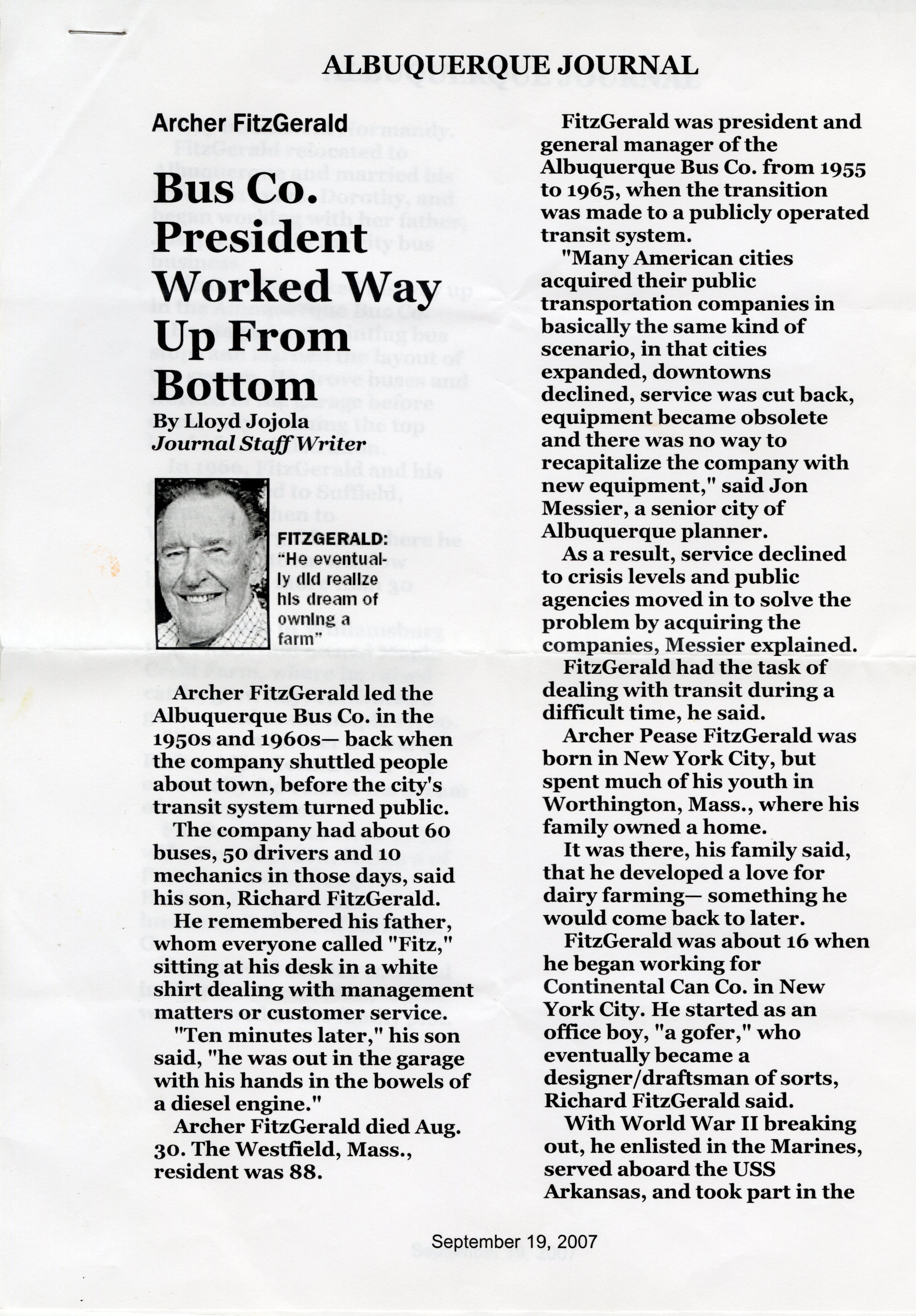 Family of Archer Fitzgerald plus article about Archer Fitzgerald from the Albuquerque Journal
