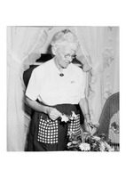 Black and white framed photograph of a smiling Dr. Stone at Brookstone wearing his gardening clothers and carrying a basket of spent garden material. This photograph was on display and is still in its frame. On the back is indicated that this was a…