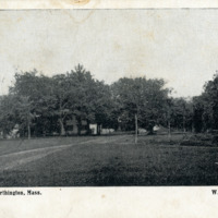 'Black and white lithograph postcard titled 'The Common, Worthington, Mass.' and 'W.M. Shaw's Series.' It is a W. M. Shaw's Series photograph. View south from Congregational Church on Huntington Road (Rte. 112). The roads aren't paved. The Parsonage is visible on the left. On the back, in ink, is written 'return to Dorothy Mason.' Card is damaged on far left.