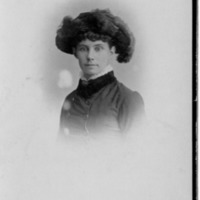 Mrs Arthur Bartlettt. Nee Kate Lee. This is a sepiatone print taken at Hardy Studios, Corner of Main and Worthington Streets, Springfield, Mass. She is wearing formal dress with a feathered hat and not quite looking at the photographer.