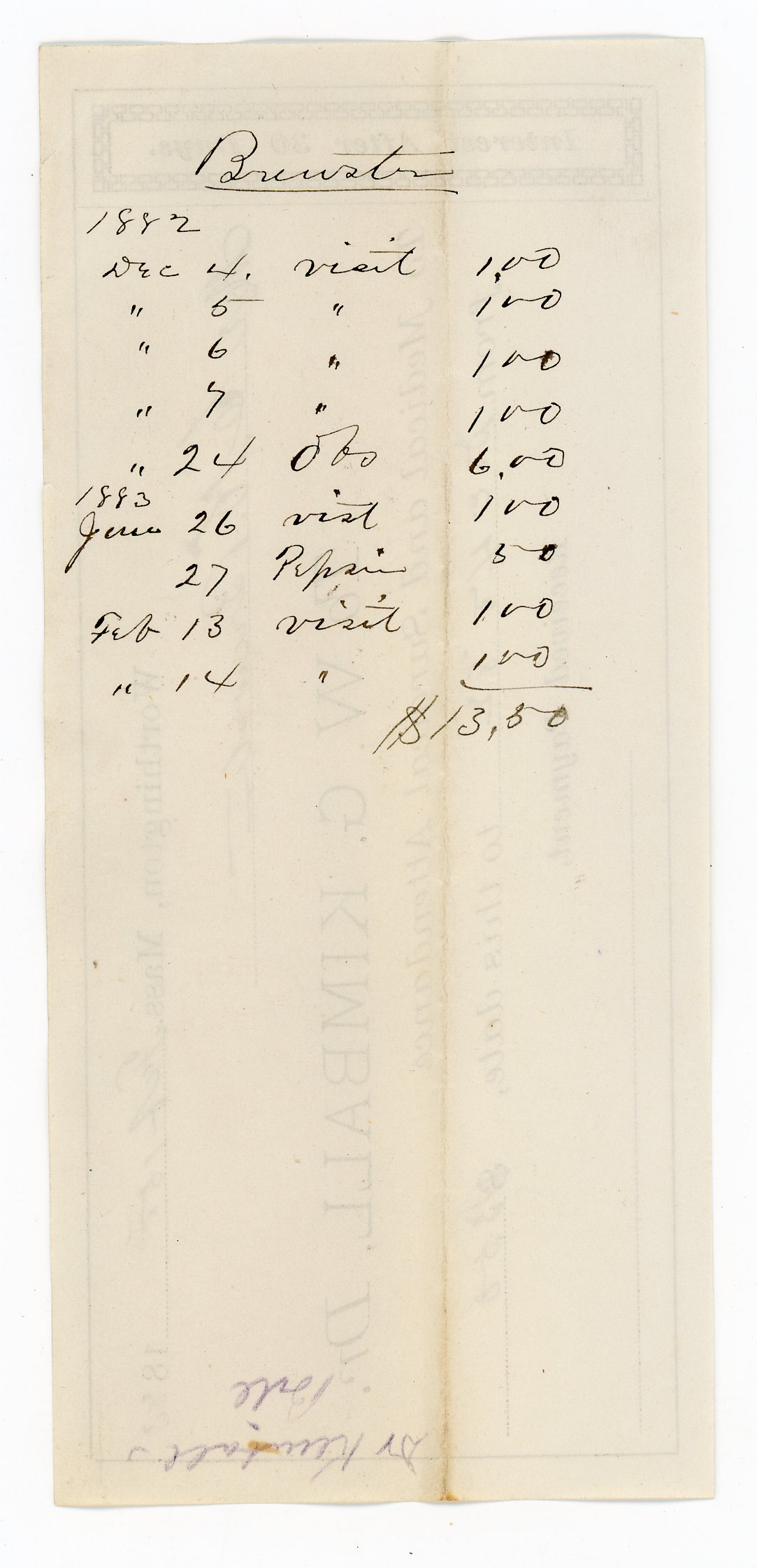 Invoices associated with the C.K. Brewster General Store located at Worthington Center. 2024-101a=Chase&Sanborn , coffee and tea, $41.05; 101b=George C. Goodwin, patent medicines $20,29;101c=Forbes and Wallace Dry Goods & Millinery, $43.89; 101d [back and front]=Homer Foot and Company, hardware etc. $34.43; 101e [front and back]=Chas. P. Alden Druggist and Apothecary, $1.50; 101f=Parker and Gannett, agricultural tools, $10.06