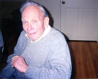 Two photos. One color snapshot taken at the 2004 Council on Aging Christmas Party at Town Hall. Shown in photo is Ralph Moran (1912-2007). One sepia photo in an oval wooden frame of Ralph as a baby