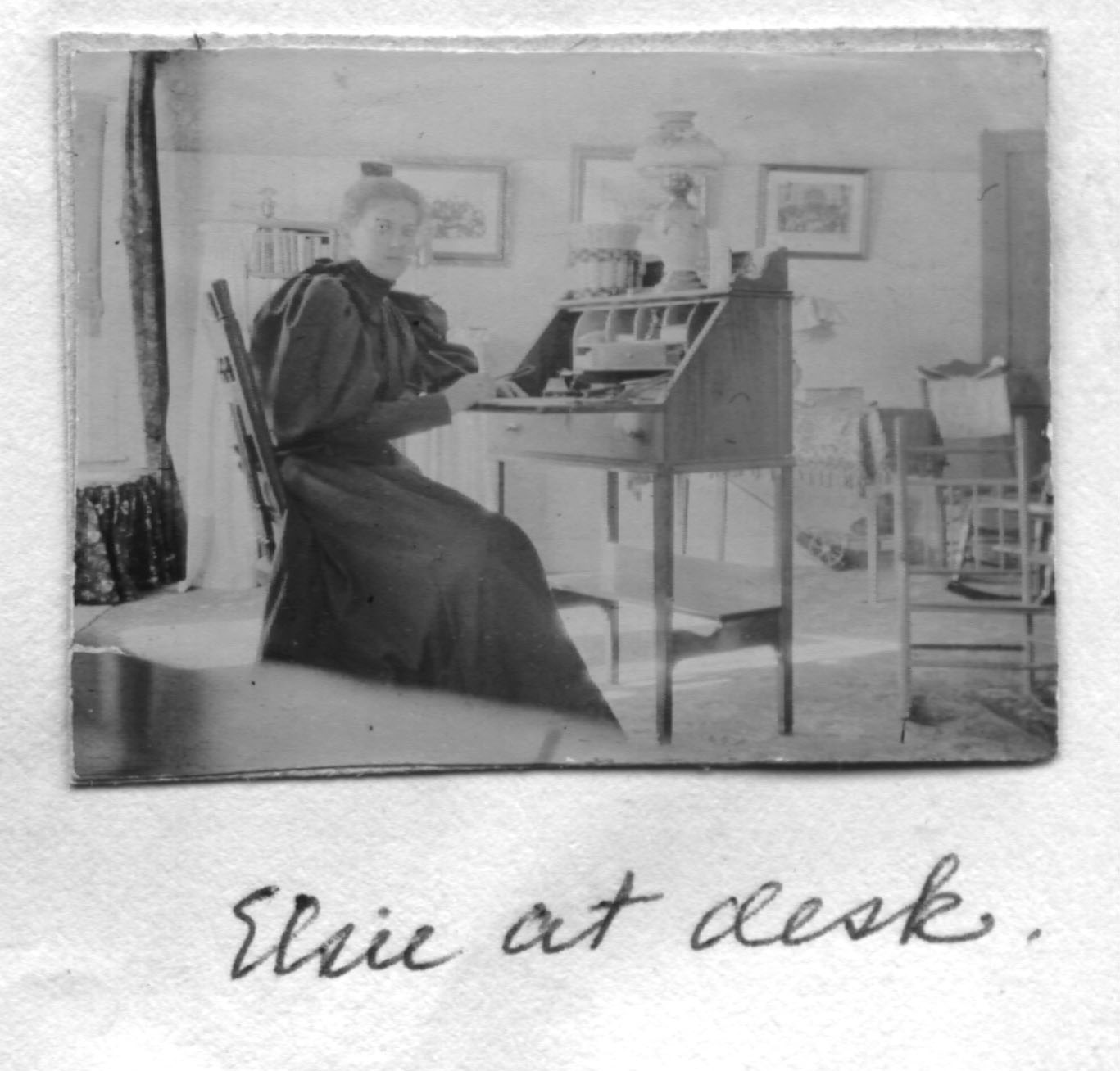 Magargal House - The Spruces. 1940s. Elsie Bartlett at desk.