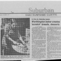 Newspaper account of town resident Laurie Trudell demonstrating making sweet rolls for the Worthington Parent-Teacher Organization bazaar.