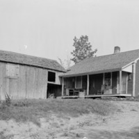 Black and white photograph of the home of Anson Drake (b. April 8th, 1871) and Kate Molssynnker (b. June 20th, 1880). The couple married on November 20th, 1897 and had three children living as of 1905 - Albert (b. February 14th, 1899), Charles (b. September 27th, 1900), and Florence (b. March 5th, 1903). The house was owned by Frank Sanderson and was first built as a schoolhouse before becoming the home of Melvin Thrasher. According to a WHS member, this house is possibly the one across from Converse Cemetery on Rt. 112. The house is featured in The South Worthington Parish by Rev. George Reed Moody (1905), page 65, plate V, #9.