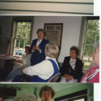 Six color photographs from 1992 tour of the Capen School House, led by Lois Ashe Brown plus scan of newspaper article that includes photo of Mandy Caputo and her son, Evan Caputo