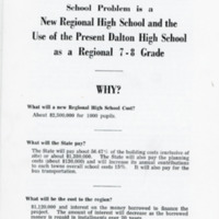 Proposal for a Regional School District that would have included Becket, Hinsdale, Dalton, Windsor, Lanesborough, and Worthington. It never happened.