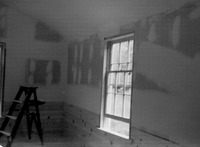 This is one of fifteen photographs of the 1976 renovation of the Capen/Riverside School House. Roger Gunn and Ernie Nugent? Color photo scanned as black and white.