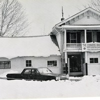 Two black and white photographic post card of 'The Corners Grocery.' One card is taken in the winter the other in the summer. Both are an Etch Tone card with the inscription: 'Home of Packard's Cheese, Worthington, Mass 01098.' The sign over the door is the same in both: 'Corners Grocery, Worthington Massachusetts, Home of Packard's Cheese.' The name of the proprietor is not mentioned.