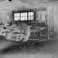 Noyes Bartlett in Wood Shop. Many of these dryplate glass negatives are in The South Worthington Parish Book by Reverend George Reed Moody. Please see this book for further information. They were originally entered into the database with little identification. The photographs were taken between 1882 and 1907 by the Howes Brothers of Ashfield. The origin and purpose of the number often written on the binding tape of these dryplates are presently unknown. The slides were cleaned and catalogued by Marion Sweeney between 1982 and 1986.