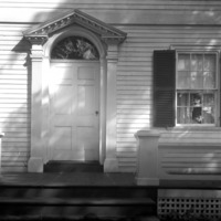 East Door of Woodbridge House. Many of these dryplate glass negatives are in The South Worthington Parish Book by Reverend George Reed Moody. Please see this book for further information. They were originally entered into the database with little identification. The photographs were taken between 1882 and 1907 by the Howes Brothers of Ashfield. The origin and purpose of the number often written on the binding tape of these dryplates are presently unknown. The slides were cleaned and catalogued by Marion Sweeney between 1982 and 1986.