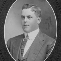 This black and white to sepia tone photo shows Clarence Bates, son of Shepherd Bates. Formal photograph by Knowlton Brother, 142 Main Street, Northampton, Mass. Oval. Scanned as black and white. In a black cardboard frame.