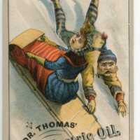 Advertising card for Dr. Thomas' Eclectric Oil [sic], color lithograph. The oil was a cure-all. On back, stamped: 'Presented by C. K. Brewster. Worthington, Mass.' Presumably this was sold at the Brewster Store in Worthington Center. The item was purchased from a dealer on eBay and donated.